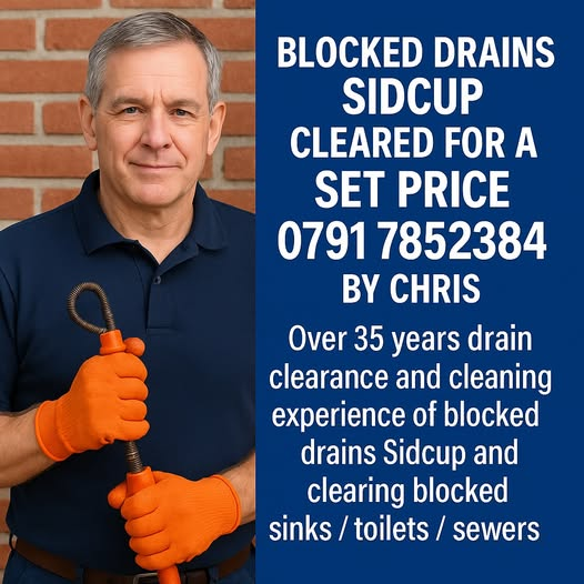 Got a blocked drain in Sidcup? Don’t let it lead to flooding, foul smells, or costly damage. Call Chris Peters Plumbing & Drainage today on 📞 0791 7852384. With over 35 years of plumbing and drainage experience, Chris provides a fast-response emergency blocked drain service at a fixed price — trusted across Sidcup DA14, DA15 and surrounding South East London areas.