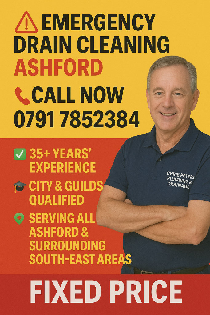 ๐จ Emergency Drain Clearance Ashford โ Call Chris Peters Plumbing & Drainage ๐ 0791 7852384 โ Fixed Price!